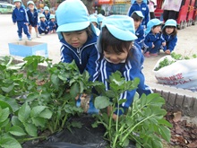 日付が前後してしまいましたが、写真はうさぎ・ひよこ組さんの芋ほりの様子です。幼稚園の畑でお芋ほりをしました。お芋が出ても出なくても、掘ったり埋めたり土の感触も楽しんでいたようです。